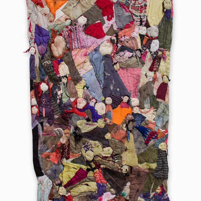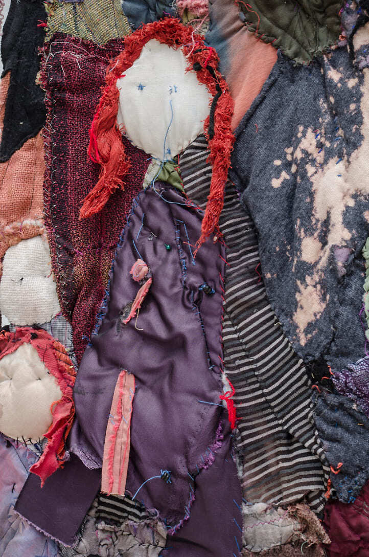 This textile installation attempts to provide visibility to the condition of women victimized as discarded sexual objects.